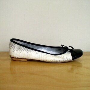 FS/NY French Sole New York Python Ballet Flats Black White Cap Toe Shoe Sz 6