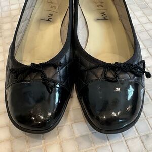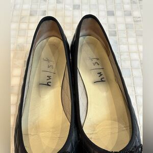 FSNY French Sole New York Black Quilted Patent Toe Flats.