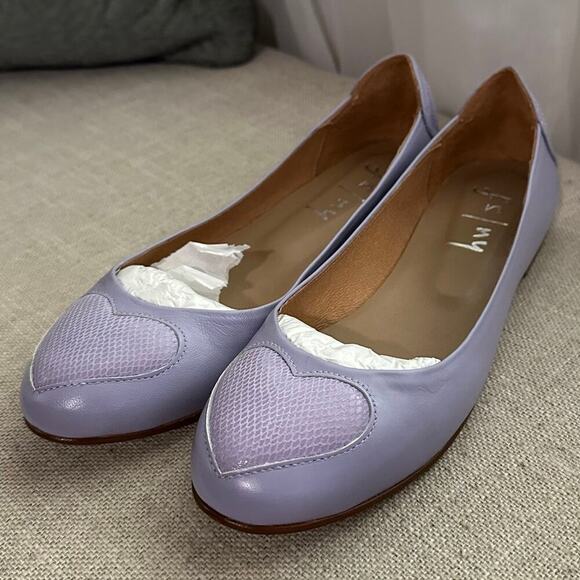 FS/NY Light Purple Leather Women's 7.5 Ballet Slip On Puff Heart Flats Round Toe