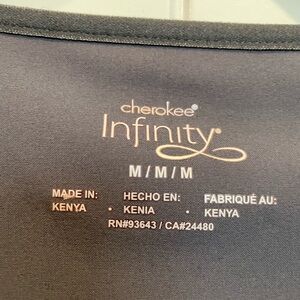 Women’s size Medium. Infinity by Cherokee dark grey stretchy scrub top. Like new. Never worn, no tags.