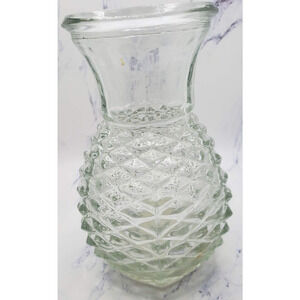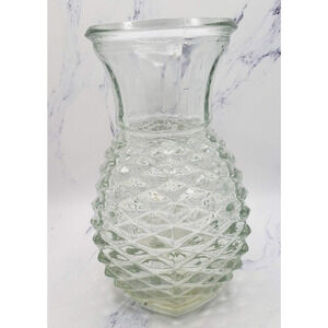 FTD Clear Pineapple Shaped Diamond Point Pressed Glass Vintage Vase
