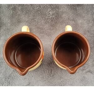 Good condition overall. There are signs of wear. One has a large scrape on the bottom front, that can be seen in photos. Other one has a small dent and large scrape on one of the designs that can also be seen in photos.