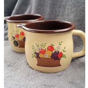 FTD Vintage Enamelware Creamer Cottage Floral Fruit 1986