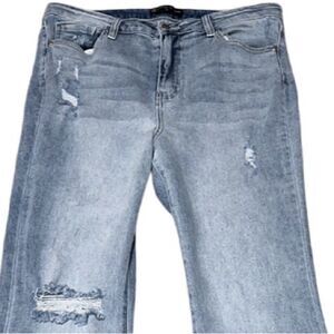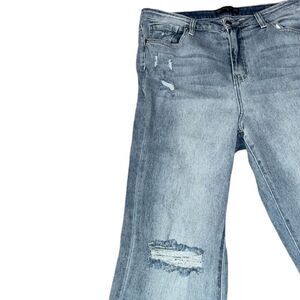 FTF High-Rise Destructed Raw Hem Light Wash Flare Jeans, GUC.