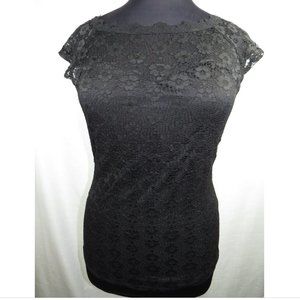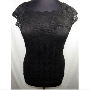 FTF Plus Size 2X Sexy Black Lace Cap Sleeve Top