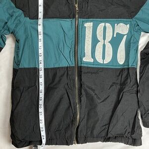 FTP 187 Streetwear Windbreaker Jacket Black Teal Zip Small Rare