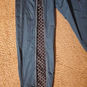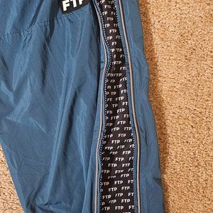 FTP mens medium track pants blue, size zip along entire leg, opens to ftp logo print