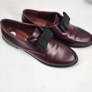 F-TROUPE Burgundy Bow Leather Oxfords Slip On 7