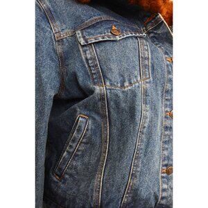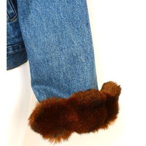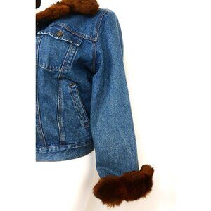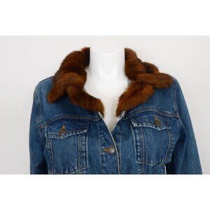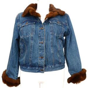 FU DA New York Jean Jacket Womens XL Dark Blue Cotton Denim Faux Fur Trim Jacket