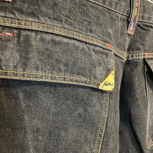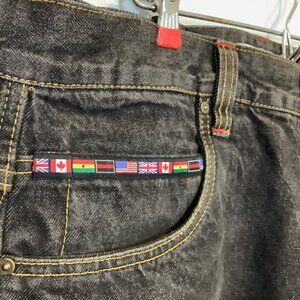 Rare FUBU Limited Edition men’s jeans in black denim with bold multi-flag embroidery. Size 38 x 34.