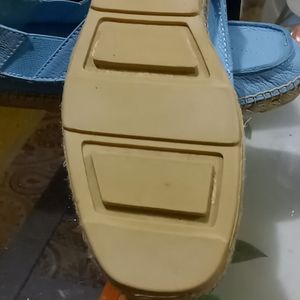 Fubu. blue flat leather shoes. Size 10 (10 1/4 inches toe to heel). Easy slip on, elastic in top sides. Comfortably and flexible leather. Can hardly tell you are wearing shoes. But still supports your feet.