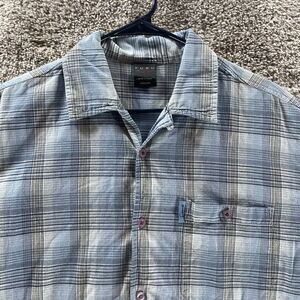 FUBU Shirt Mens Large Blue Plaid Short Sleeve Button Up Hip Hop Streetwear Logo