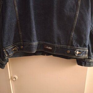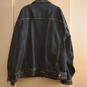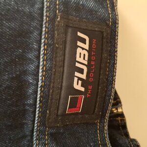 FUBU the collection since 1992 men's vintage dark blue heavy denim jacket. Size 3XL. pit to pit measures 30 inches. Length measures 29 inches. Brand new condition.
