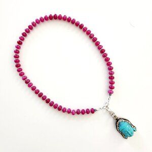 Necklace with fuchsia colored jade gemstones (5x8mm).