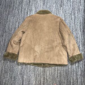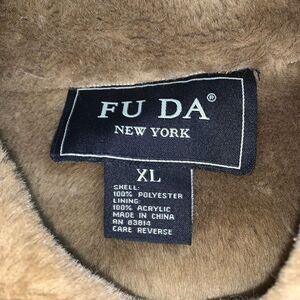 FU DA New York Womens XL Jacket Beige Faux Suede Buttons Pockets Faux Fur