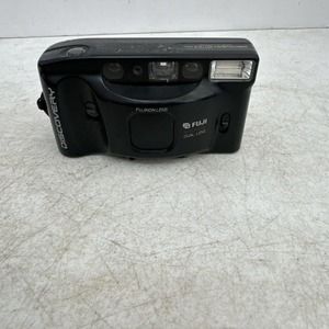 This is a Fujifilm Discovery 1000 camera, perfect for capturing your memories on film. It features autofocus and dual lenses, making it ideal for both close-up and distant shots. The camera has been tested and is in excellent working condition.