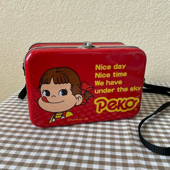 FUJIYA Peko & Poko Tin Metal Box Crossbody Box 6'' x 4'' x 3''