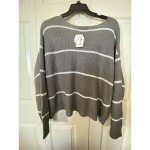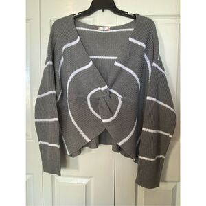 FULL CIRCLE TRENDS 3X 2-WAY GRAY/WHITE LONG SLEEVE SWEATER