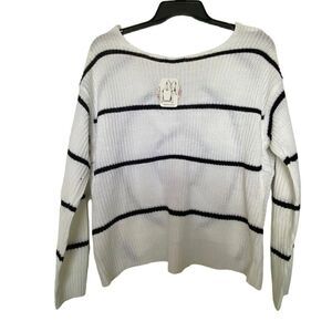 FULL CIRCLE TRENDS 3X 2-WAY WHITE/Black Stripe LONG SLEEVE SWEATER