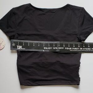 Center ruching with a tie hem
