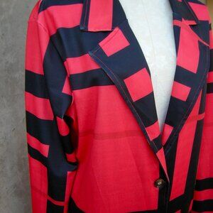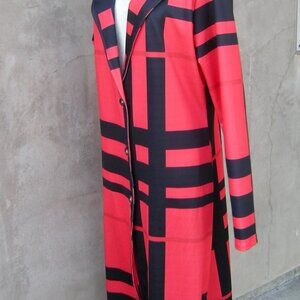 RARE - VERY COOL Full length red and black duster-style jacket. I would not really consider this a coat, since it is not lined and made of a nice medium weight polyester. It is more of a fashion statement piece.