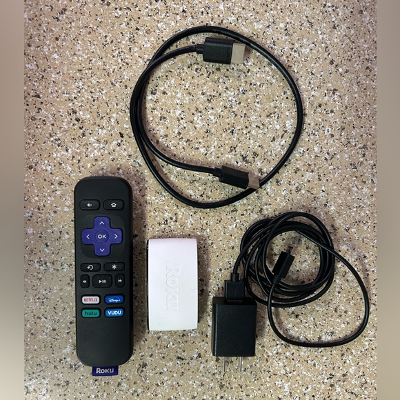 Full ROKU set with HDMI cable, power cord, remote, and roku box included. In perfect condition, getting rid of due to downsizing!!