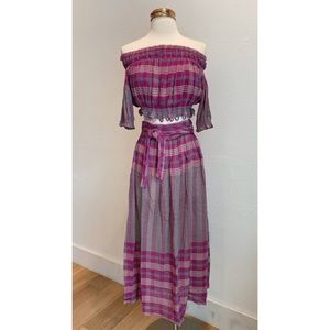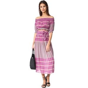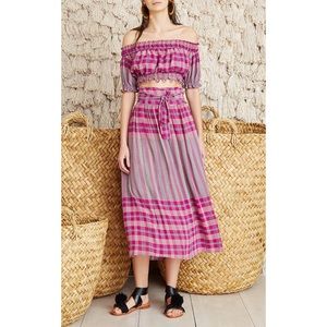 FULL SET Matching Set Apiece Apart Plaid Midi Skirt & Off the Shoulder Crop Top