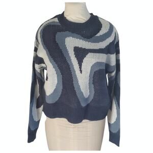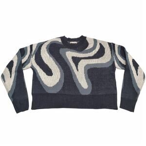 FULL TILT Retro Swirl Sweater Gray Black Blue Boxy Cropped Size S Y2K Abstract