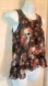 FULL TILT Sheer black top with red roses and sugar skulls. Ruffle bottom, pullover, (faux) Button front.
