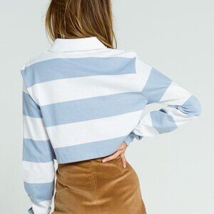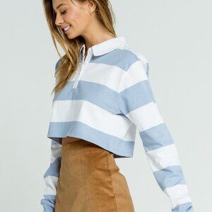 FULL TILT Stripe Womens Light Blue Crop Polo Tee sz S