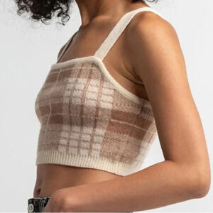 FULL TILT Woman’s plaid Cami crop top cream, brown, perfect condition size small