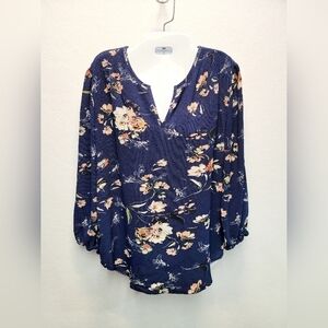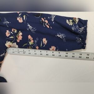New Without Tags FUN 2 FUN Kenmore Women's Size Small Floral 3/4 Sleeve, Split V-neck Neckline, Curved Split Hem. Smocked Detsil at Shoulders, Back Pleat.