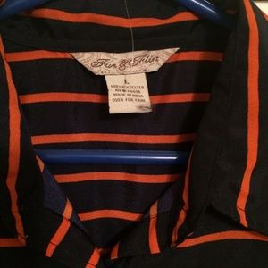 FUN AND FLIRT Blouse Top Striped Button Down Lg