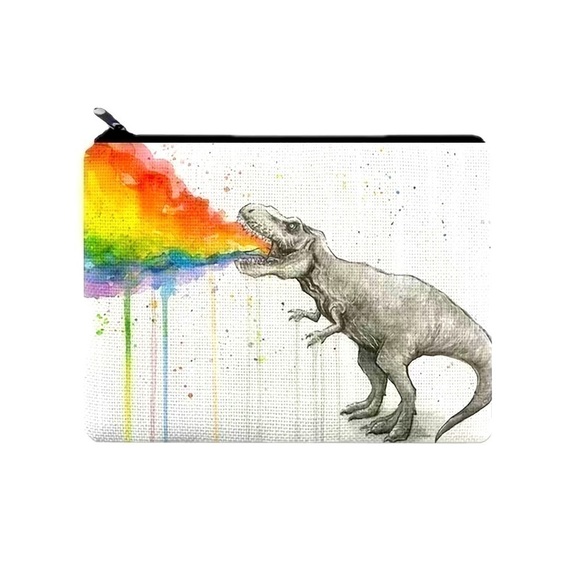 Super Fun Dinosaur with Rainbow Flame Cosmetic/Storage Bag with Zipper, New In Package