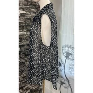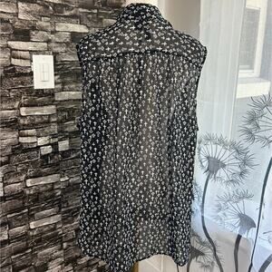 A beautiful sheer sleeveless blouse. No size tag. Seems like an XL. Button down with collar.