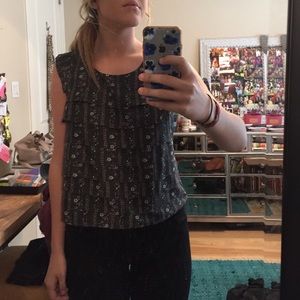 Adorable charcoal ruffled floral top. the sleeves are super fun and flattering! Slightly shorter but not a crop top. Minimal wear.