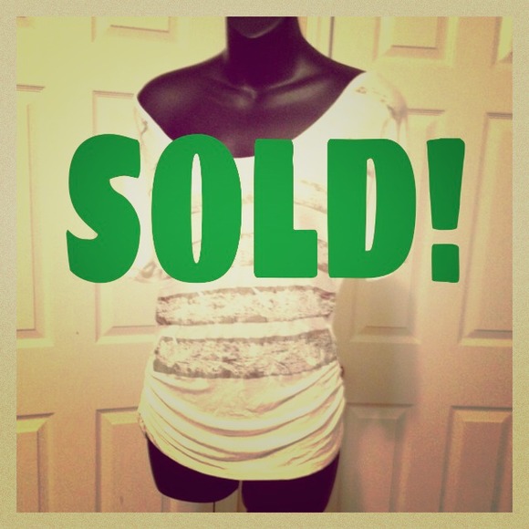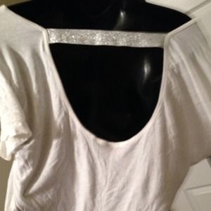 Fun, slouchy shirt with cut out back. White with metallic silver stripes