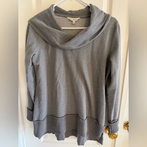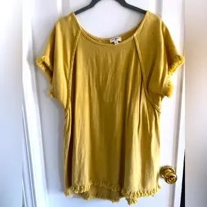 THIS IS A COMFORTABLE TOP TO DRESS UP OR DOWN. HANGS NICELY. COLOR LOOKS GREAT W JEANS NON SMOKING HOME