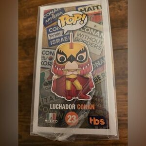 The product is a Funko vinyl figure of Conan O'Brien from the Conan collection. This special edition #23 figure is part of the Pop! product line and comes with a protector. It is a GameStop exclusive, making it a unique addition to any collector's display. Featuring Conan O'Brien as the character in a bird costume, this figure is sure to appeal to fans of the popular talk show host and his franchise.