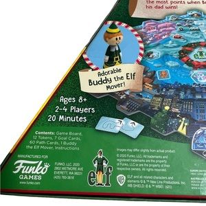 Help Buddy the Elf find his dad by laying a loopy route from the North Pole to New York City. Play path cards to the board and move Buddy along its crazy curves. Lead him toward your secret goal landmarks along the way to score points. The player with the most points when Buddy the Elf finds his dad wins!
