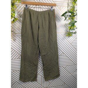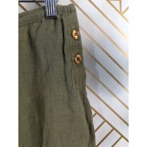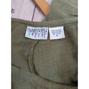 FUNKY PEOPLE Women's Green Cotton Boho Lagenlook Pants Hippie Button Size M READ