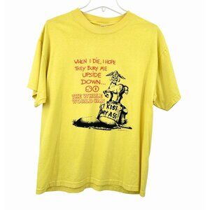 FUNNY VINTAGE HANES YELLOW NOVELTY GRAPHIC DONKEY KISS MY...T-SHIRT - L