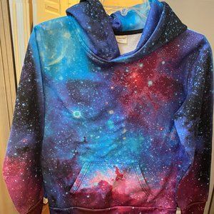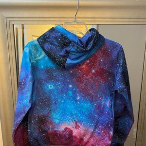 FUNNYCOKID PURPLE, RED & BLUE SPACE KIDS HOODIE SIZE XXL. FRONT POCKETS. PULLOVER. LIKE NEW CONDITION. THICK. NO FLAWS.WARM FLEECE LINING.