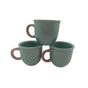FUO31 by Furio Set Of 3 Handmade Ceramic Teal Mugs With Terracotta Handles