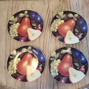 FURIO Eden Fruit Design Pear Grape Plumb Oval Salad 4 Plates, 8 3/8 inches