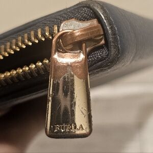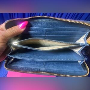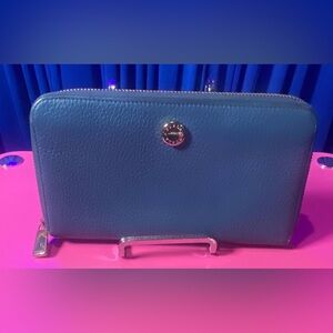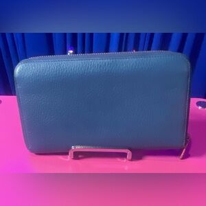 FURLA Blue Leather Zip Around Wallet, Authentic. EUC