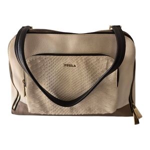 FURLA Genuine Python Embossed One Shoulder Bag Pony Style Women Authentic