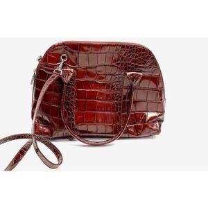 The FURLA Ischia Dark Cherry Croco Embossed Leather Dome Handbag is a stylish and versatile accessory for any occasion. Made from high-quality leather with an embossed crocodile pattern, this medium-sized bag features a dome shape and a zip-top closure for security. The double handles and lightweight design make it easy to carry, while the reflective and zip-around features add functionality. The classic red color and silver hardware give it a touch of sophistication, perfect for both casual and formal settings. With the signature Furla logo accents, this handbag is a must-have for any fashionable woman. Bag is in new condition. Zipper needs to be broken in still. Furla Storage Bag comes with it.