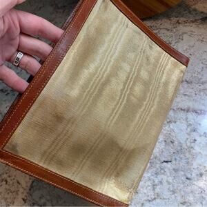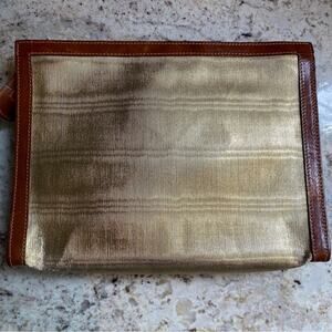 Lovely FURLA Metallic Gold / Champagne clutch with brown leather trim. Spectator style.
