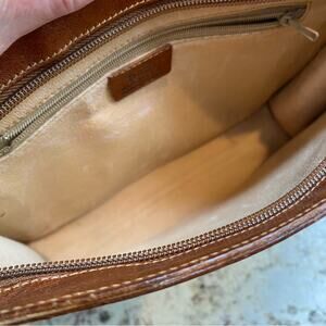 Inside is leather lined with a smaller inner pocket (lined in matching fabric). Has an inner leather tag that reads “FURLA made in Italy Genuine Leather.”